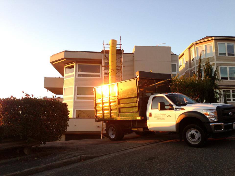 Commercial project located near the waterfront in downtown Everett. Here, we removed 3 layers of roofing (1 hot tar, 2 Torchdown) and installed an 80 mil. PVC membrane by IB Roof Systems.