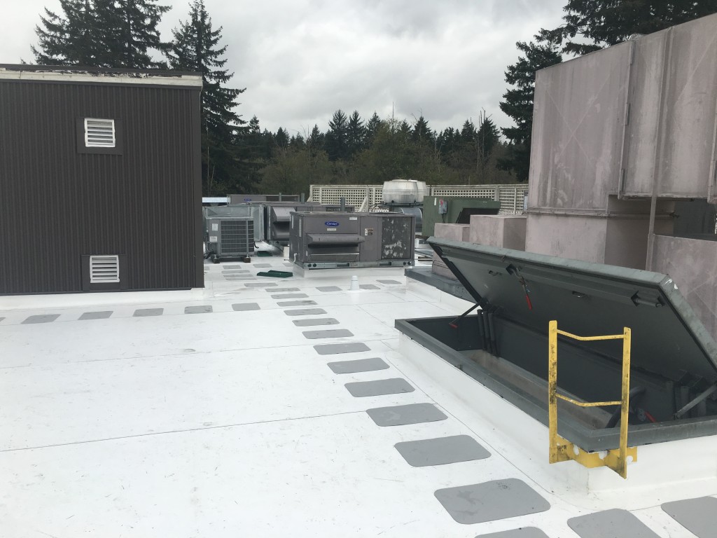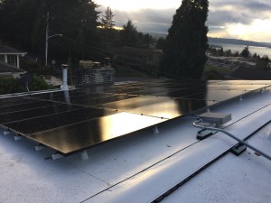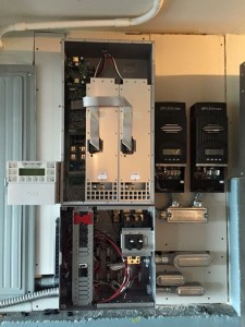 Kirkland Solar Project where we first installed a new 50 mil. IB Roof System. Next, we installed a Grid tied with Battery back up Solar system using an OutBack Power GS8048A Radion inverter along with Outback Power’s GH 200 Batteries. SolarWorld 280 watt PV Modules were used on the roof. In this impressive solar system, when the grid is running properly, your home or business will use power generated from your solar panels or pull electricity from the grid. Any excess power generated over and above your needs goes back to your utility company for credits on your power bill in areas where net-metering is available. In the event of grid blackouts, these systems will switch to “off-grid mode” drawing power stored in your battery bank to power your home AND using your solar panels to recharge your battery bank.